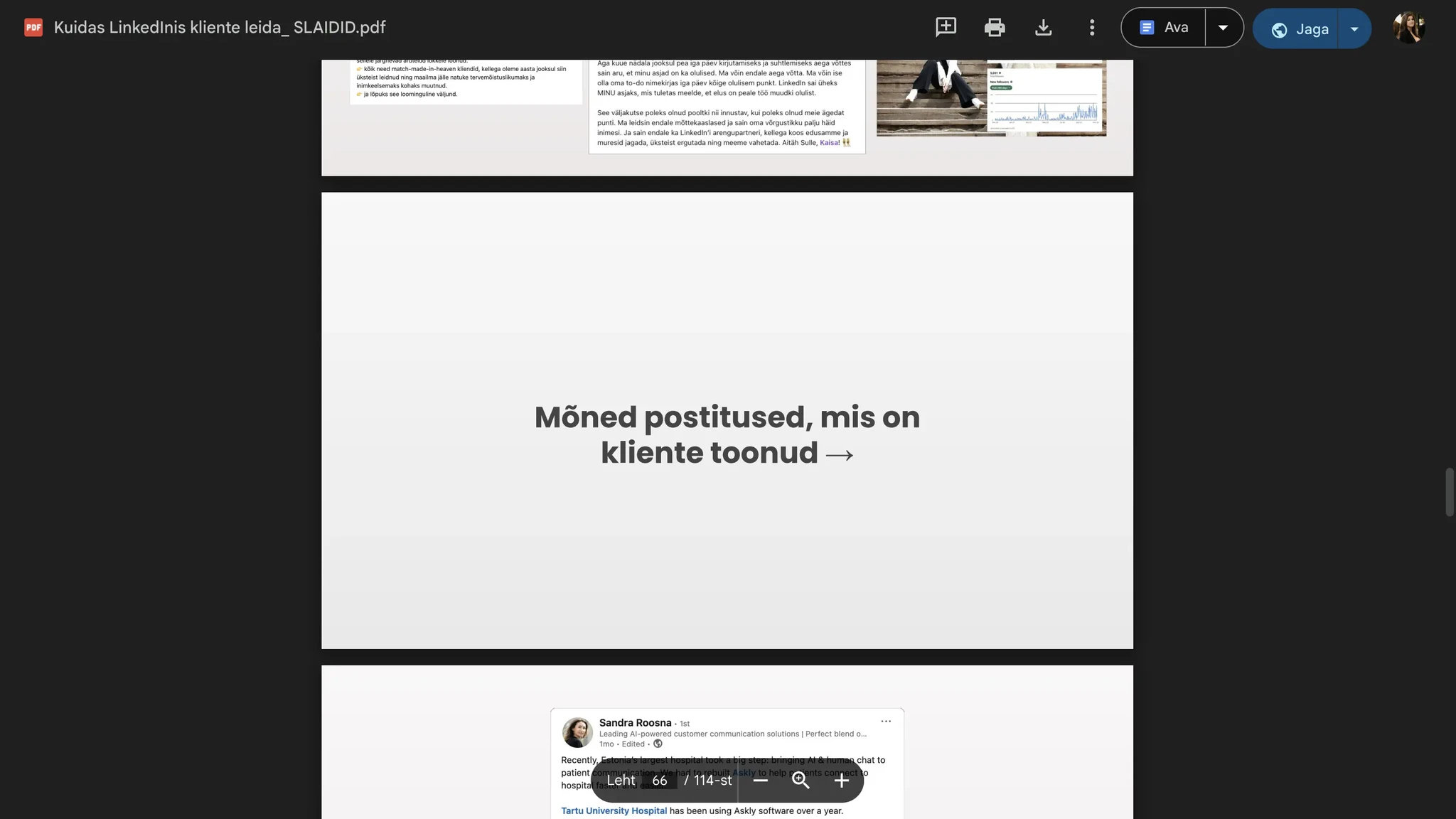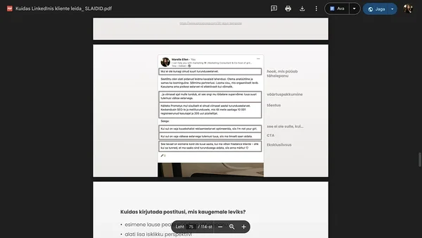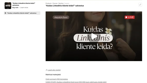 Praktiline masterclass, kus jagan enda ja oma klientide kogemust, kuidas LinkedInis kliente leida: koos näidete, numbrite ja lugudega päris elust.