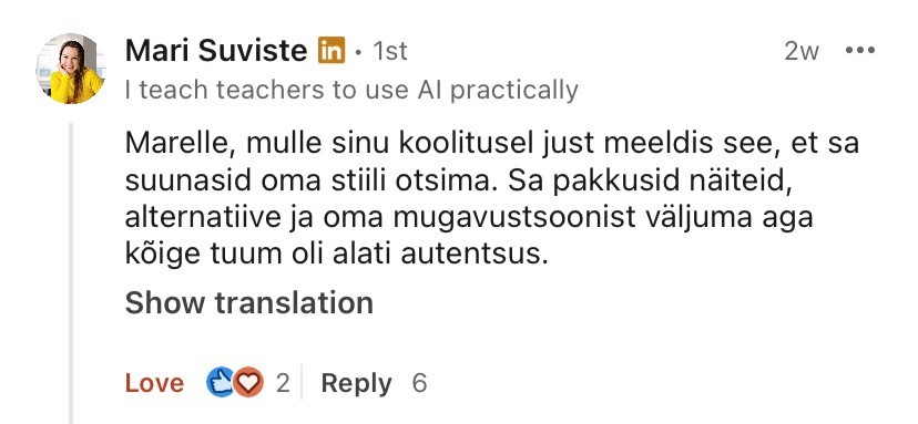...ja lõpetuseks mõned anonüümsed mõtted tagasiside ankeedist: