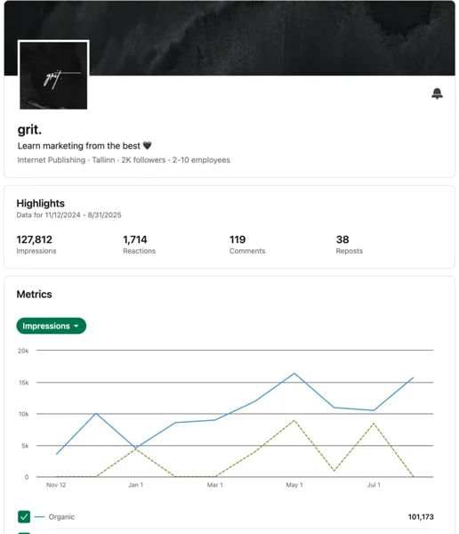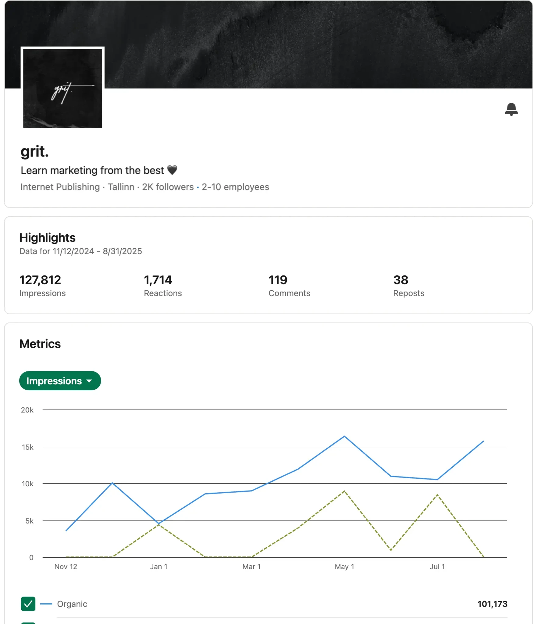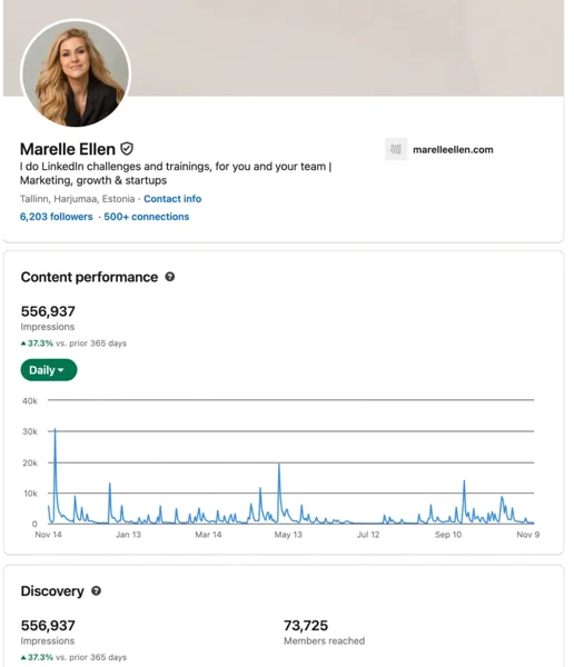 → Alates 2024. aasta märtsist tegutsen iseenda tööandjana, tehes LinkedIni koolitusi ja väljakutseid nii eraisikutele kui ettevõtetele.