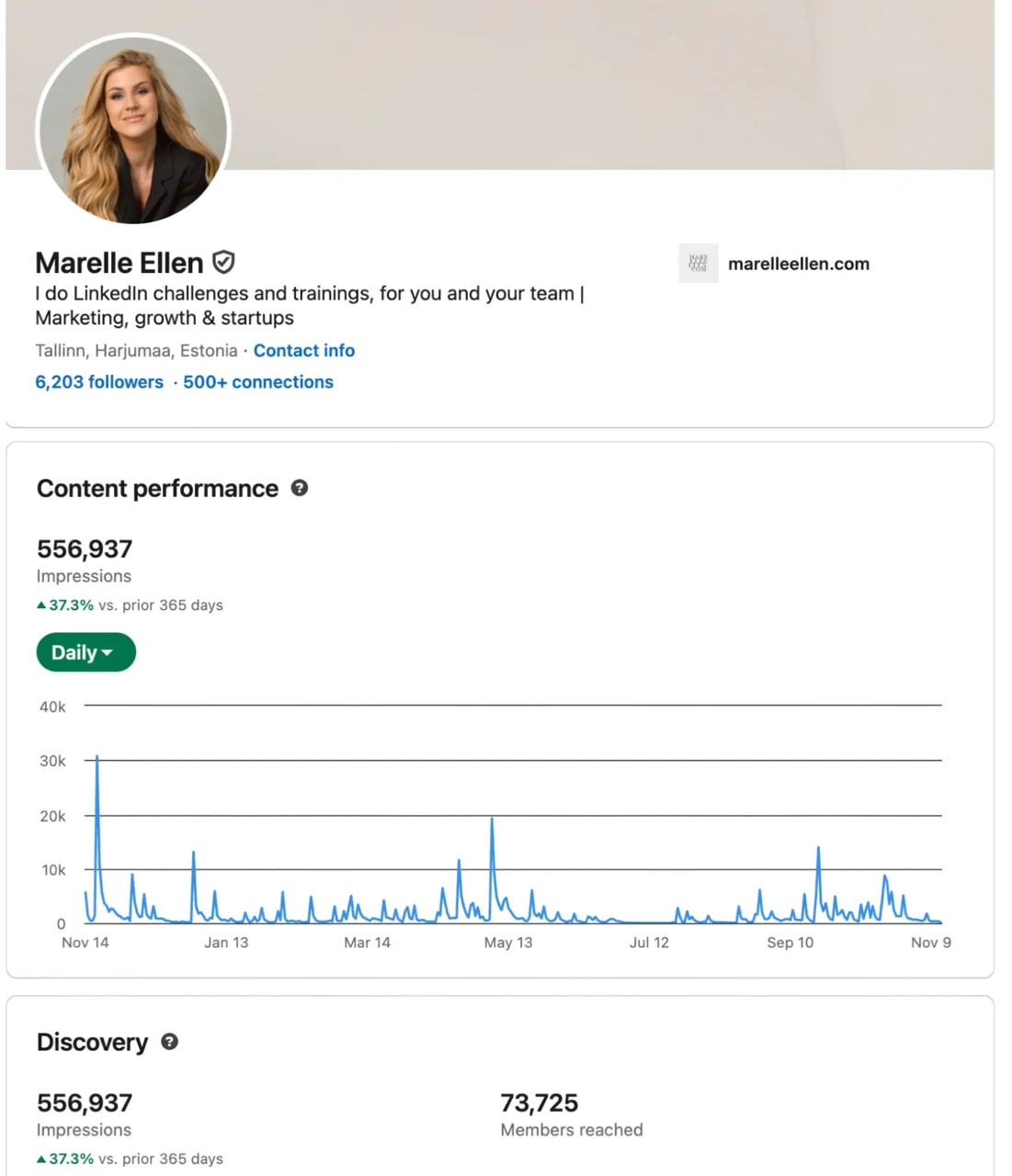 Näiteks viimase aasta jooksul jõudsin eestikeelsete postitustega 72 385 inimeseni. Need postitused on mulle toonud hulgaliselt müügitulu, koostööpakkumisi ja esinemiskutseid.